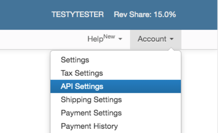 To create your private app, navigate to your API Settings page, located in the Account menu on the right of your navigation bar.